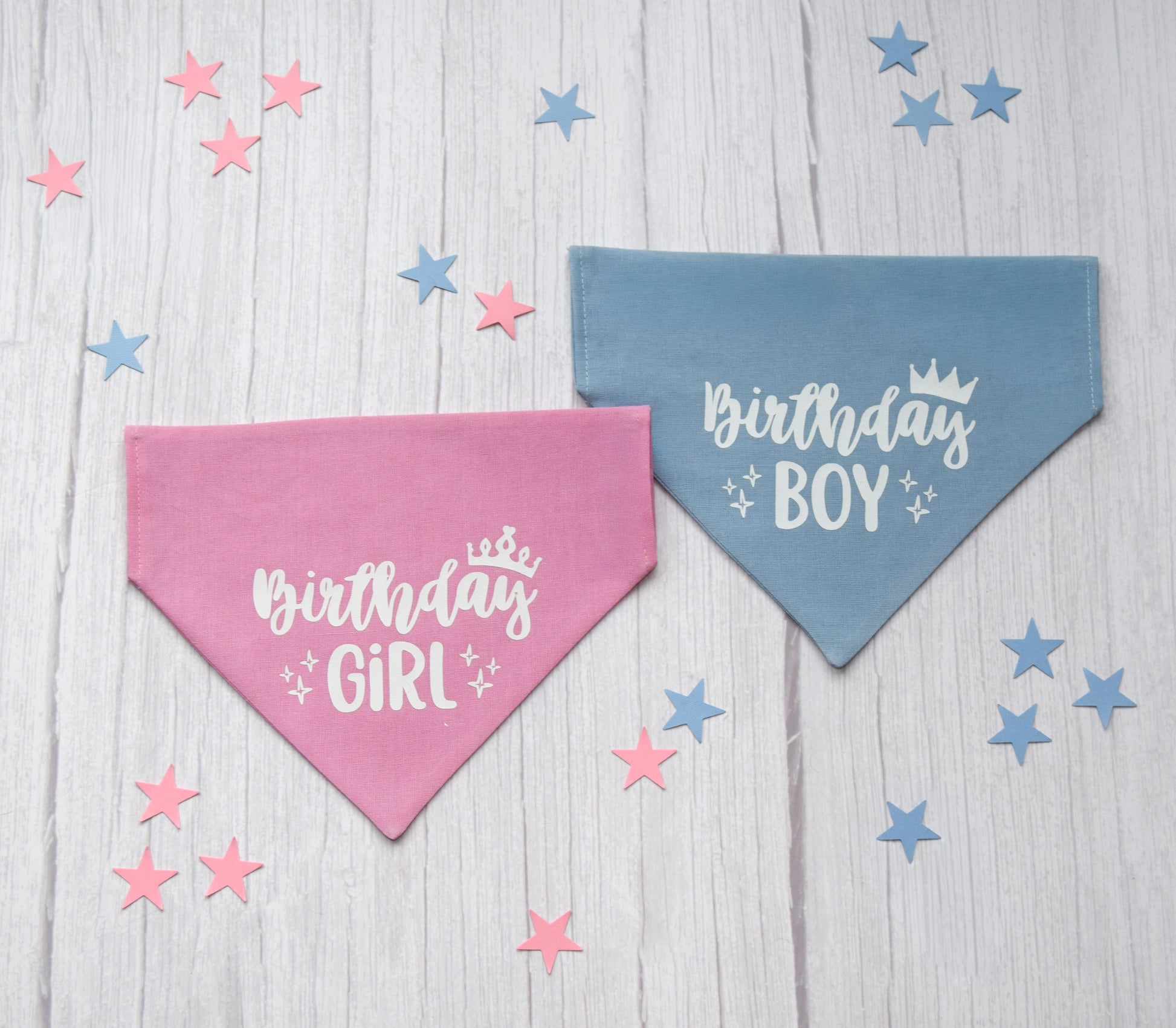 Our “Birthday Girl” and “Birthday Boy” bandanas are perfect for your pet to wear on their special day ! All of our bandanas are handmade to order so you can completely customise yours by choosing the text, fabric colour and text colour.