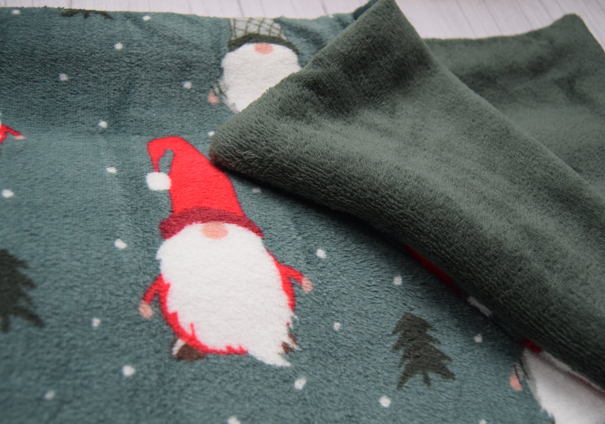 This lovely design features festive gonks on a luxurious green background with a plain green reverse.